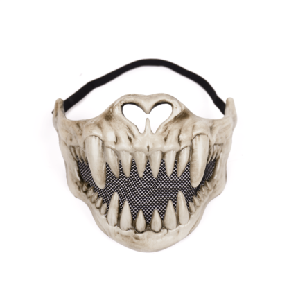 Máscara plástica suave, con elástico ajustable. Medidas: 25 cm alto, 21.5 cm largo.