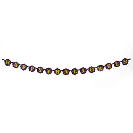 Guirnalda happy Halloween, da la bienvenida a tus invitados, con esta bandera única para colgar en la pared, viene premontada y lista para colgar, no requiere montaje, está impresa en letras negras "Happy Halloween" y una imagen de calabaza.