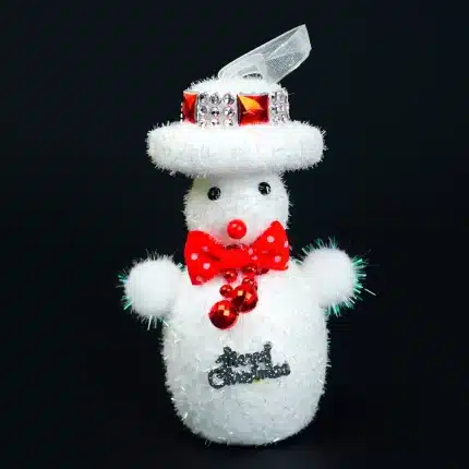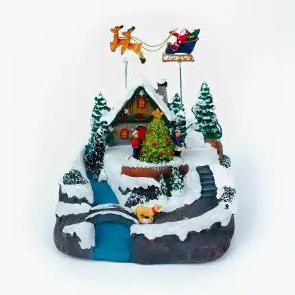 Adorno musical, con escena de esquí sobre hielo giratorio, decorada con árboles y muñeco de nieve pintada a mano, incluye luces, movimiento y música.