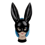 Antifaz de conejo de plastico, con orejas largas, 2 colores negro y blanco.