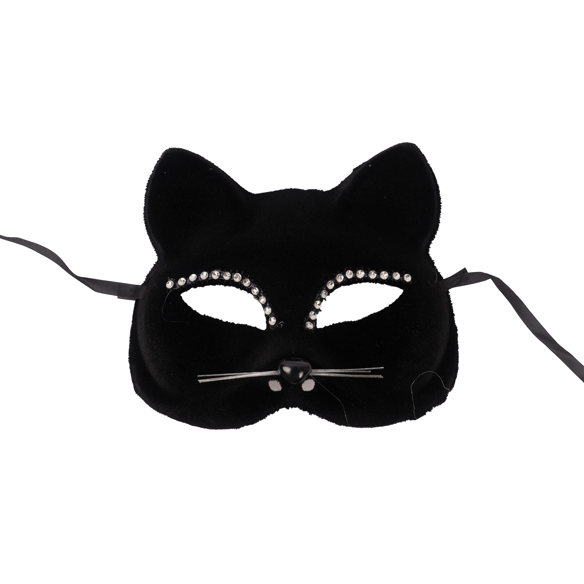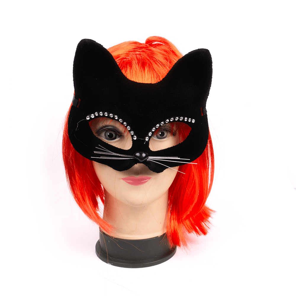 Antifaz De Gamuza De Gato Negro Con Perlas Elaborado En Plastico Engamuzado Medidas: 15Cm De Alto X 17Cm De Largo