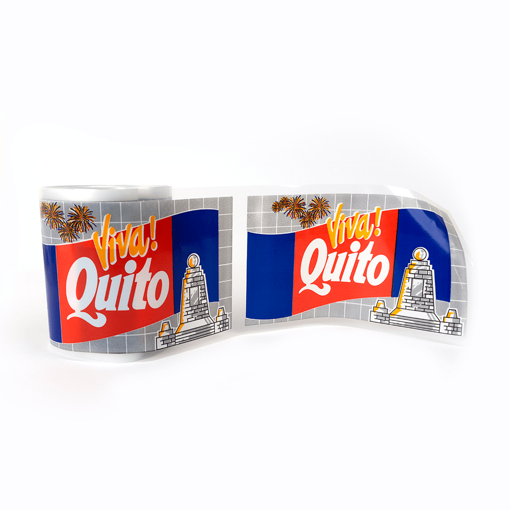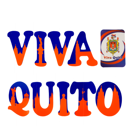 Banda plástica para decorar con la frase Viva Quito.