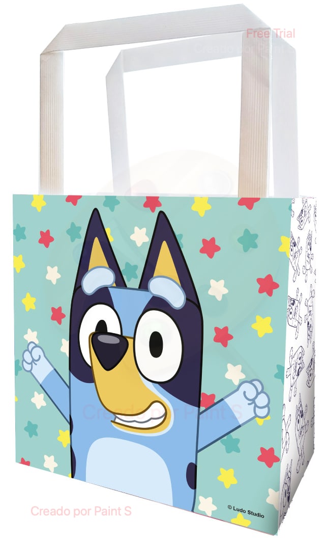 Haz que los detalles de tu fiesta sean aún más especiales con esta bolsa de papel Bluey. Ideal para empaquetar regalos o pequeños obsequios para tus invitados, esta bolsa de papel está decorada con los adorables personajes de Bluey, creando una atmósfera alegre y temática para los más pequeños. Perfecta para cumpleaños o eventos de Bluey, su diseño colorido y resistente es ideal para almacenar dulces, juguetes o sorpresas.