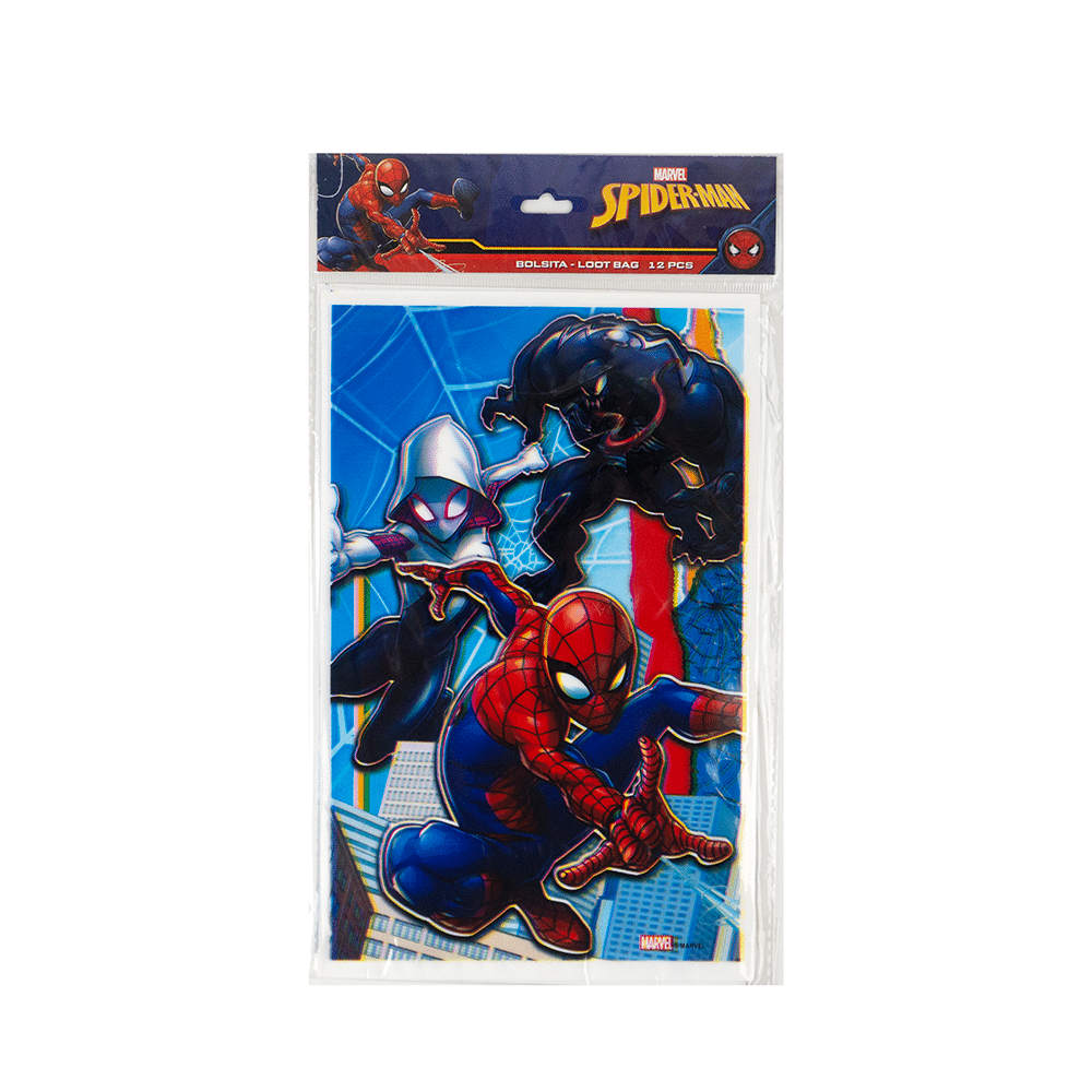 Bolsa para la piñata de plastico con Tematica Spider-man, 12 unidades.