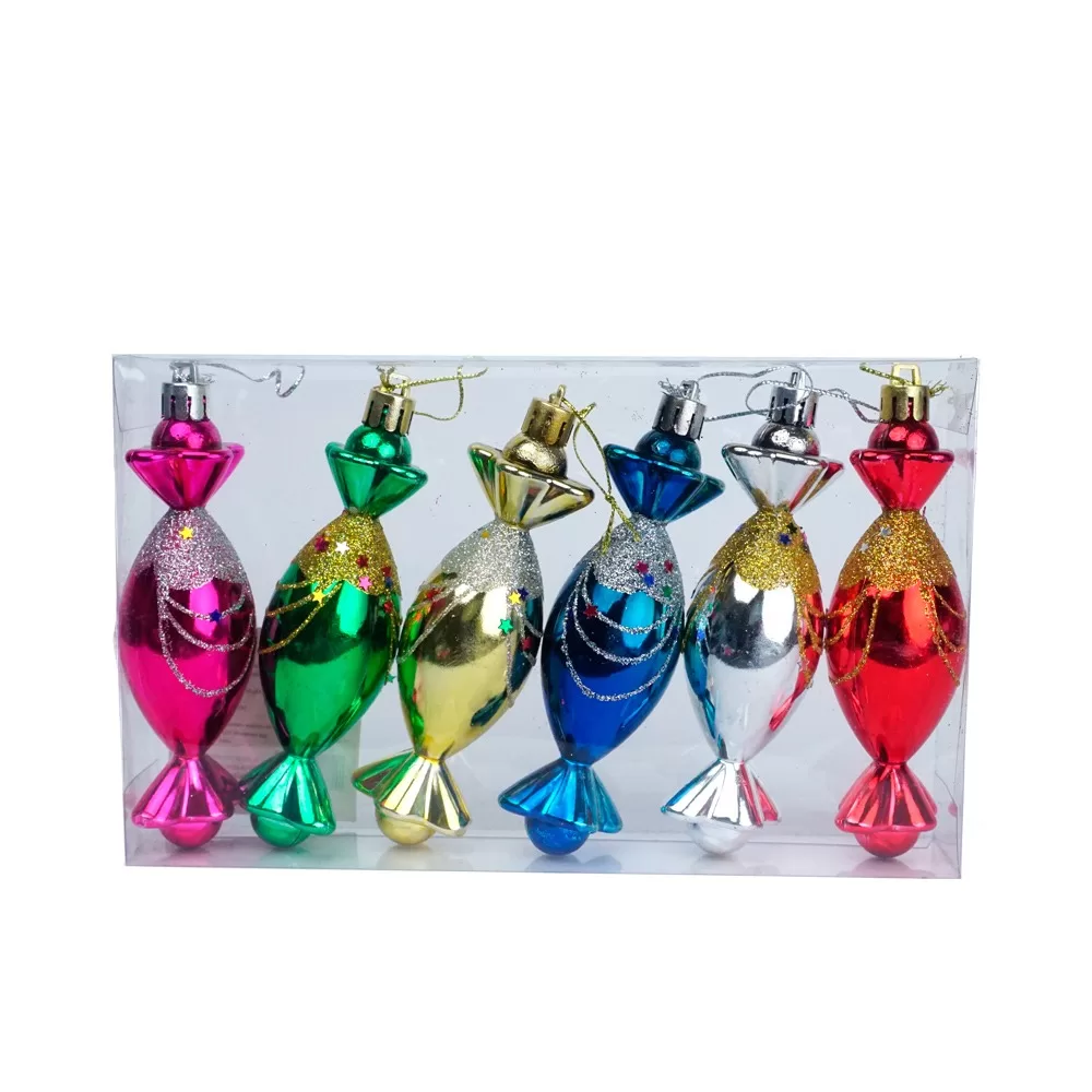 Juego de 6 bombillos con 12 cm de largo. Adorno con forma de caramelo para decorar tu árbol de Navidad. Peso ligero y fácil de colocar.