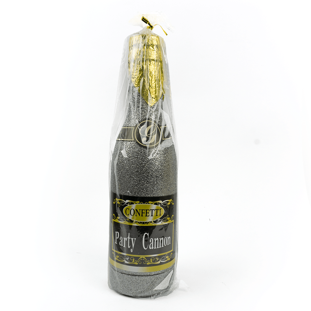 Botella Lanza Confetti En Color Plateado Y Doradoelaborado En Plástico Medidas:33Cm De Largo X 29Cm De Diámetro