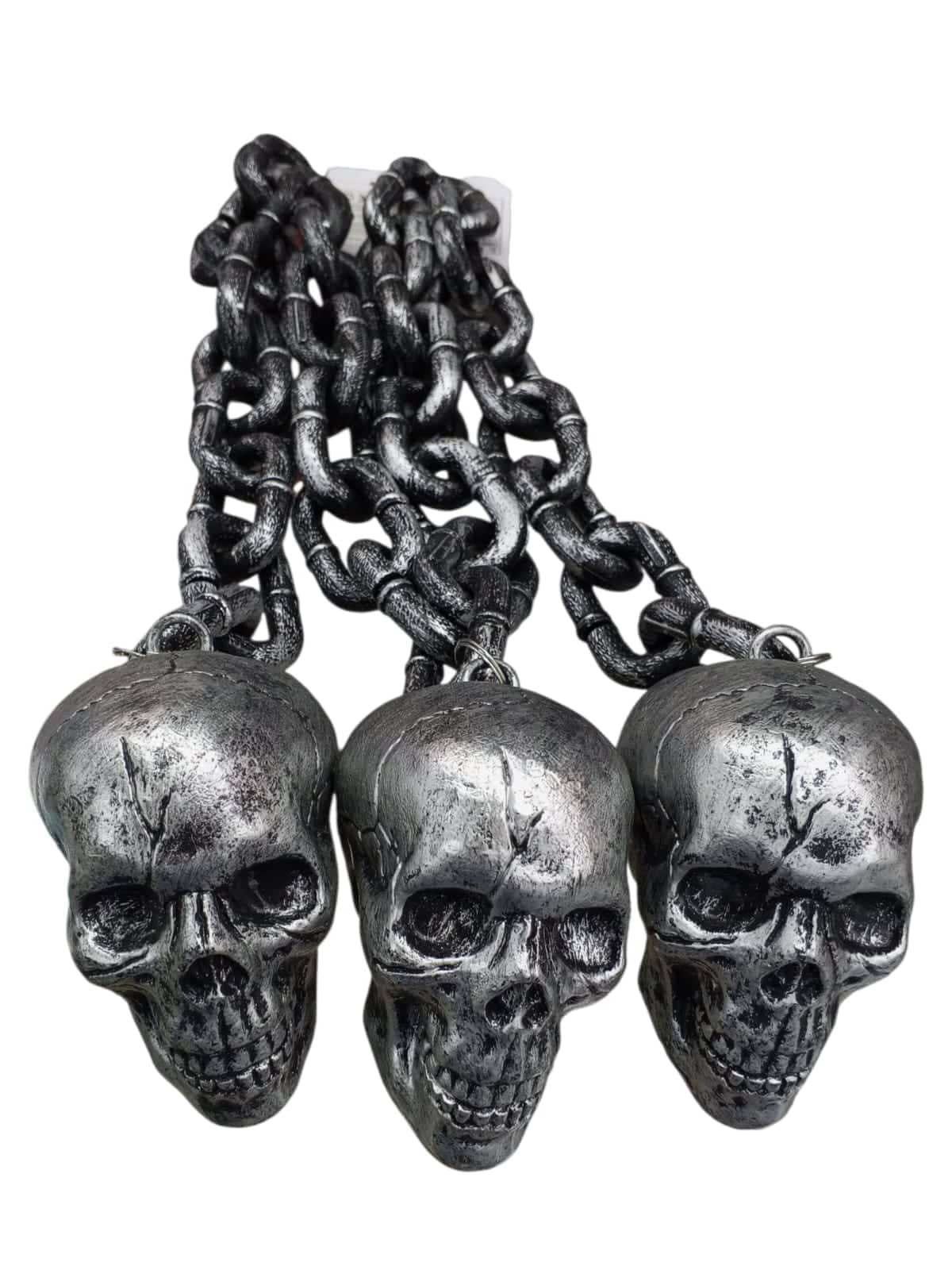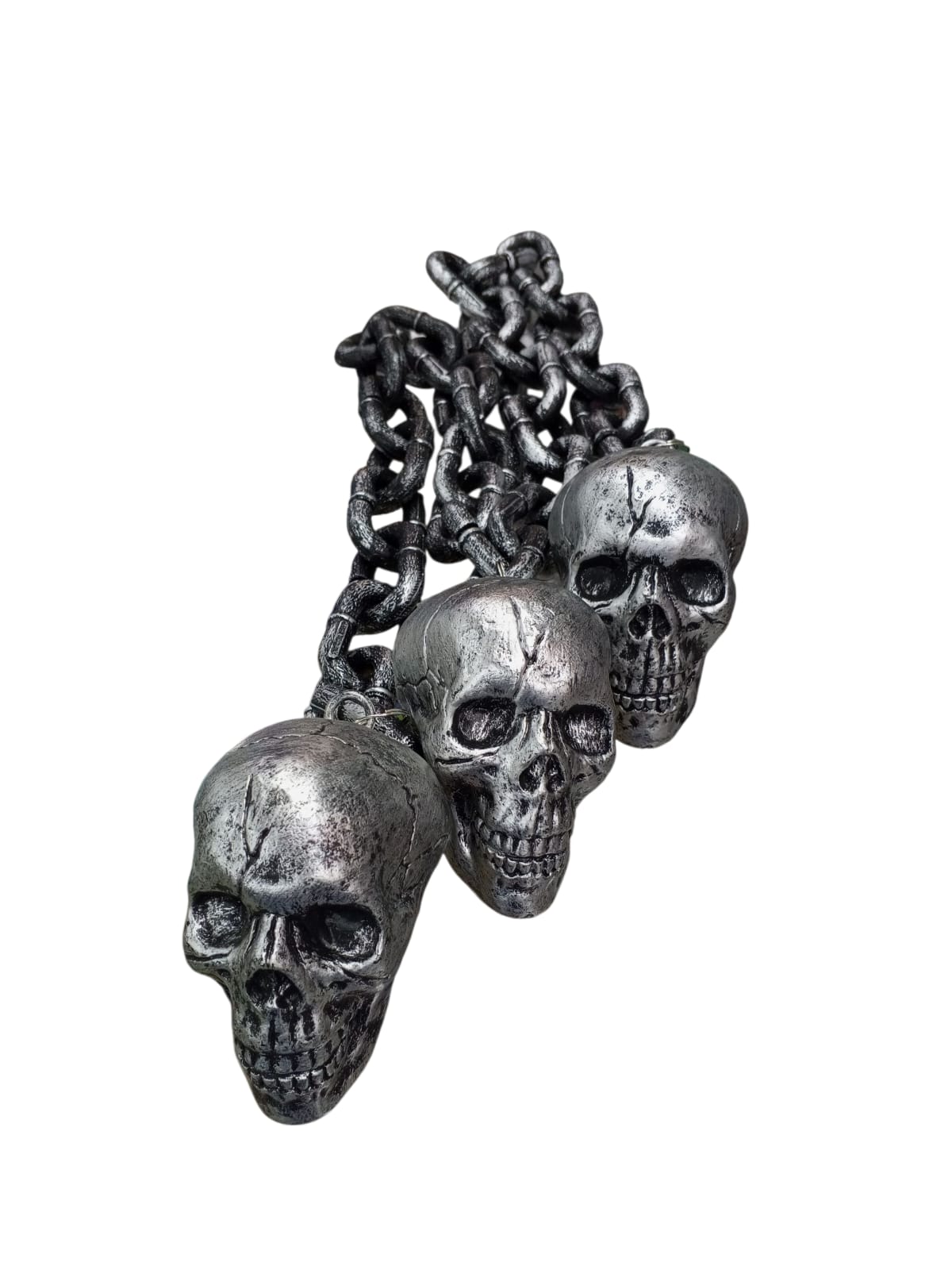 ¡Dale un toque oscuro y llamativo a tu disfraz con nuestra cadena con 3 calaveras! ???????? Perfecta para complementar disfraces de Halloween, piratas, gánster o cualquier look atrevido. Fabricada en material resistente y seguro, este accesorio agrega estilo y personalidad a tus fiestas y eventos temáticos.