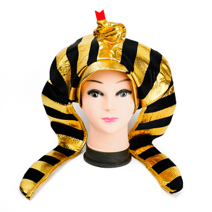 Sombrero egipcio, accesorio clave para un disfraz de faraón con rayas doradas y negra. Es unisex y se adapta a la mayoría de niños y adultos. Perfecta para Halloween, cumpleaños, fiesta de disfraces, festivales o actuación.