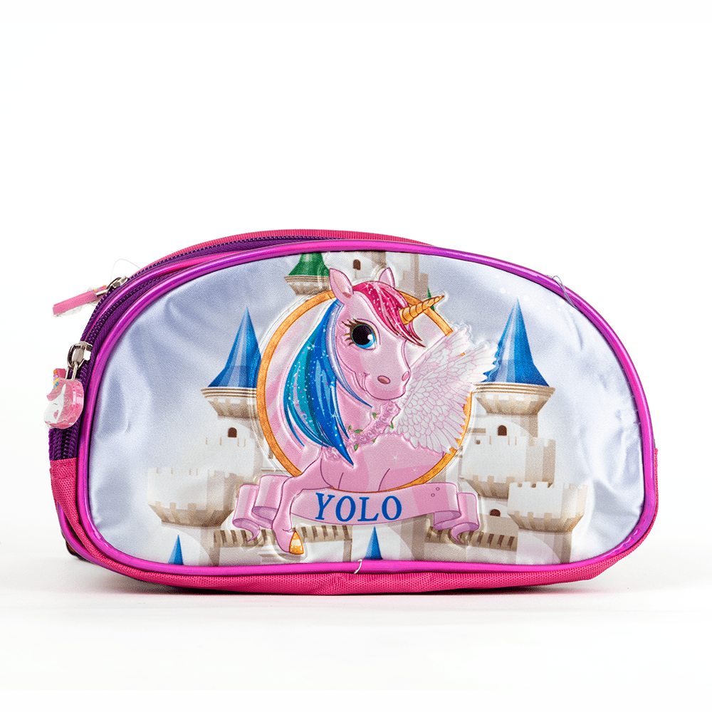 Cartuchera escolar, con figura de unicornio Yolo.