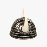 Casco vikingo color plateado y cachos blanco.