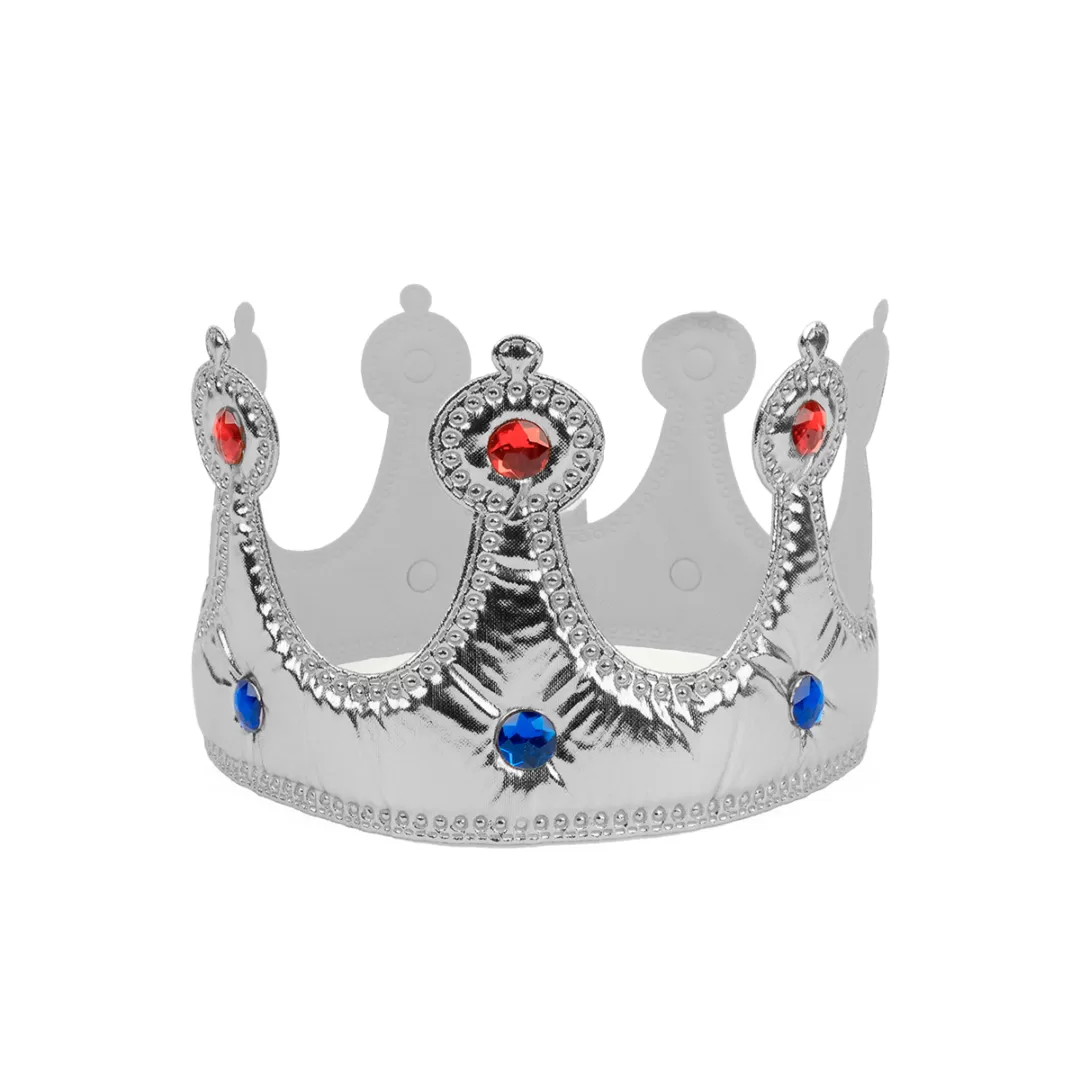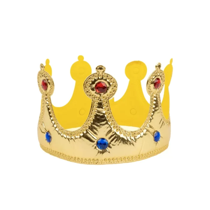 Corona de rey elaborado en tela con gemas de colores.