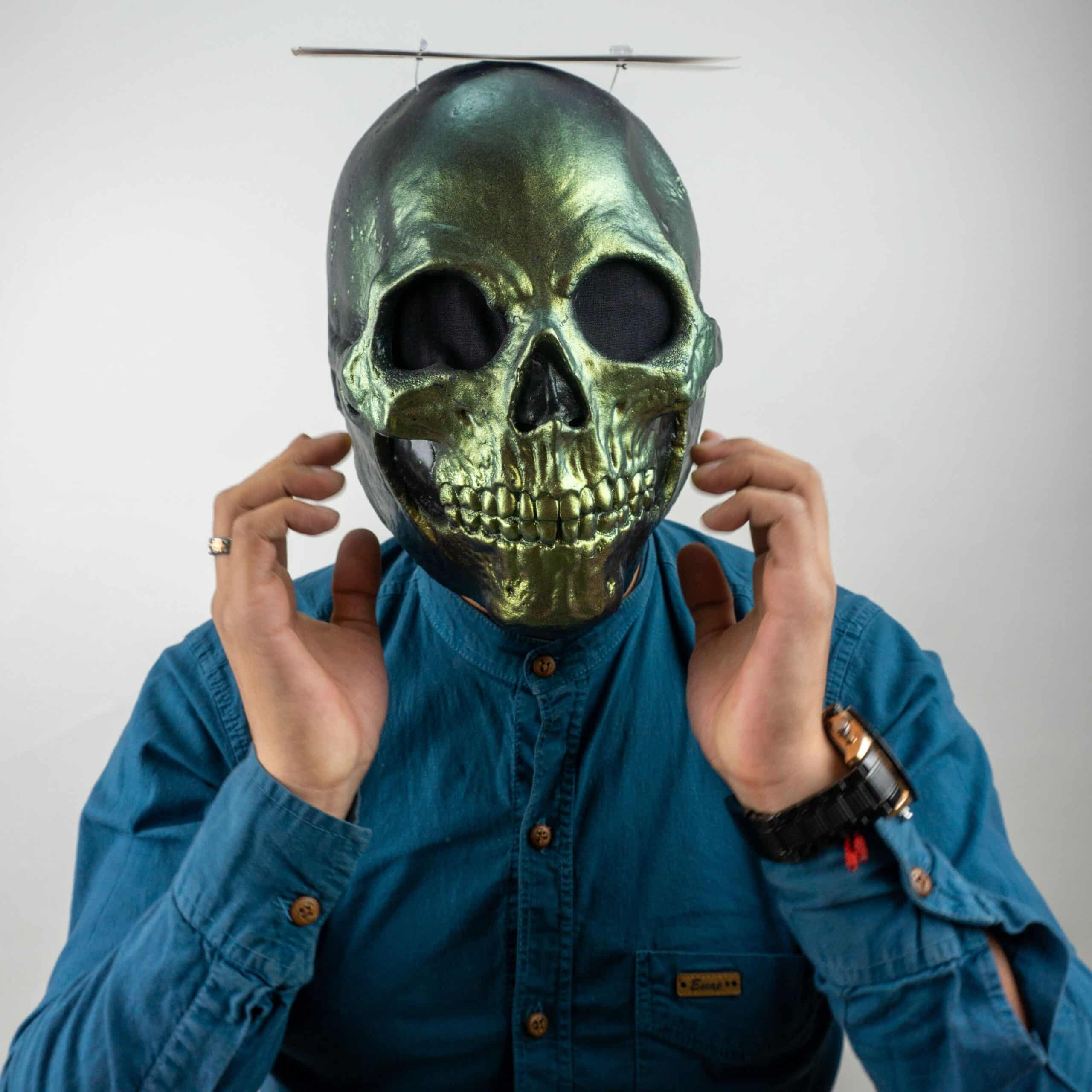 Máscara de latex sin ajuste para adultos, en forma de craneo.