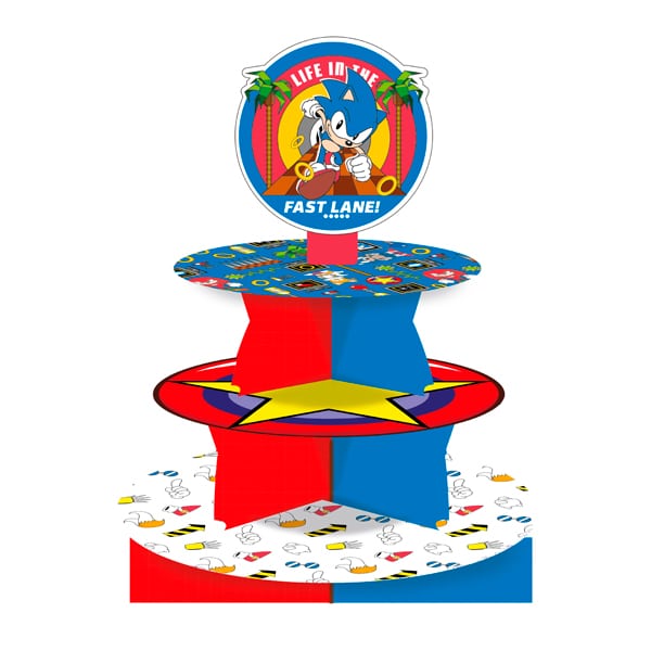 Con un diseño dinámico y lleno de color inspirado en el famoso erizo azul, este soporte es perfecto para exhibir deliciosos cupcakes en fiestas, cumpleaños y eventos temáticos. Ya sea para una fiesta de Sonic o simplemente para añadir un toque de diversión a tu celebración, este soporte elevará tanto tus cupcakes como la emoción de tus invitados. ¡Prepara tus cupcakes y corre hacia el éxito con Sonic!