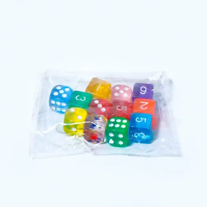 Set de dados multicolor, dispone de 2 versiones, 1 de puntos y otro con números.