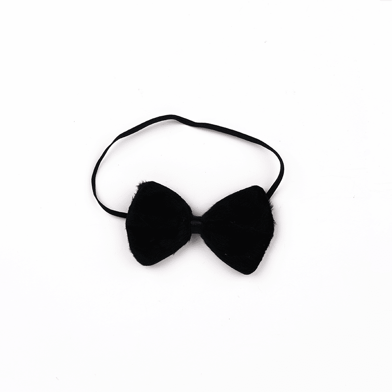 Set de diadema de orejas de gato de gamuza en color negro con orejas plateadas incluye un corbatín y una colita.