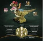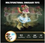 Juguete de dinosaurio que camina a control remoto, pulverización de niebla giratoria 360, incluye sonidos y luces