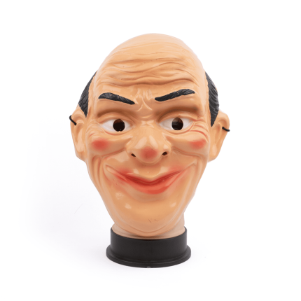 Máscara plástica suave, con elástico ajustable. Medidas: 25 cm alto, 21.5 cm largo.