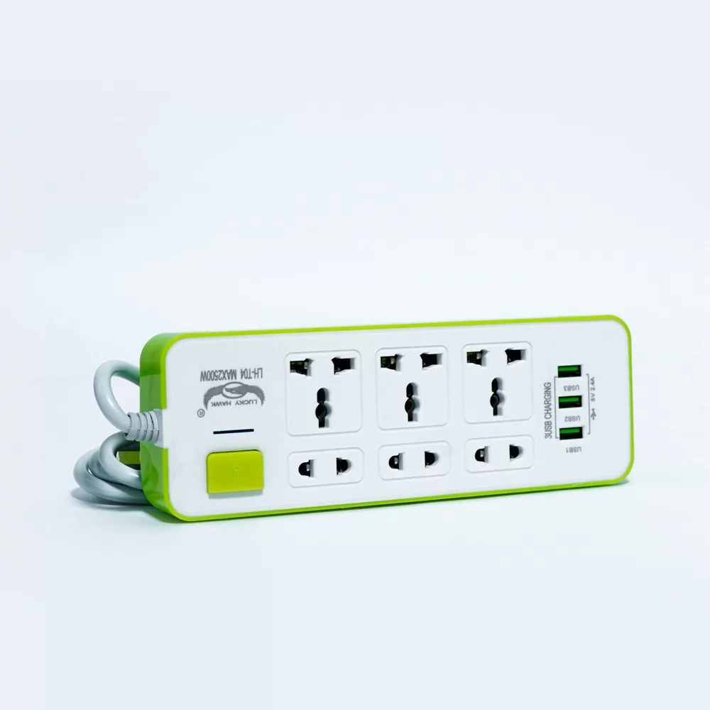 Extensión electrica, contiene tres puertos USB, Max.10A. 250V.