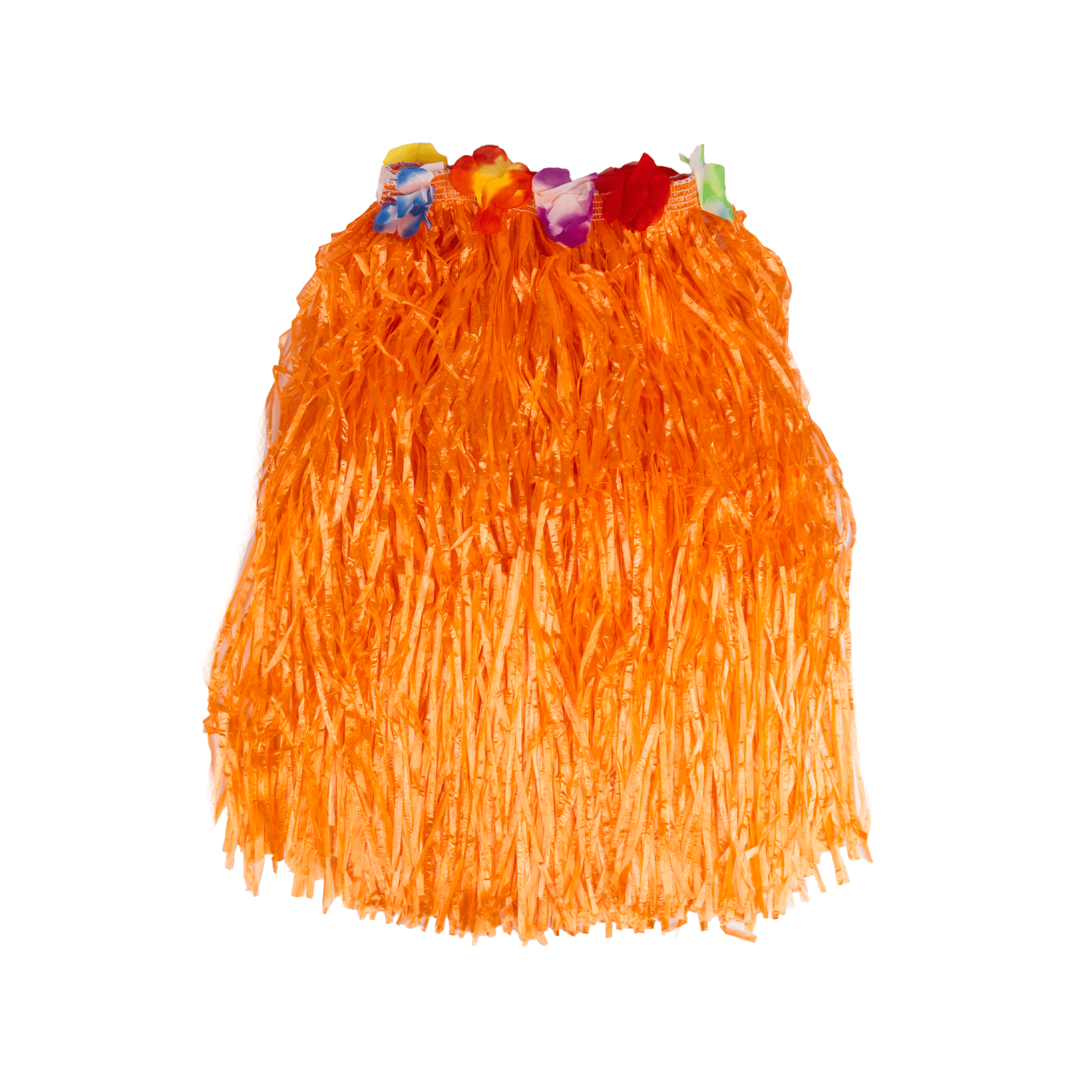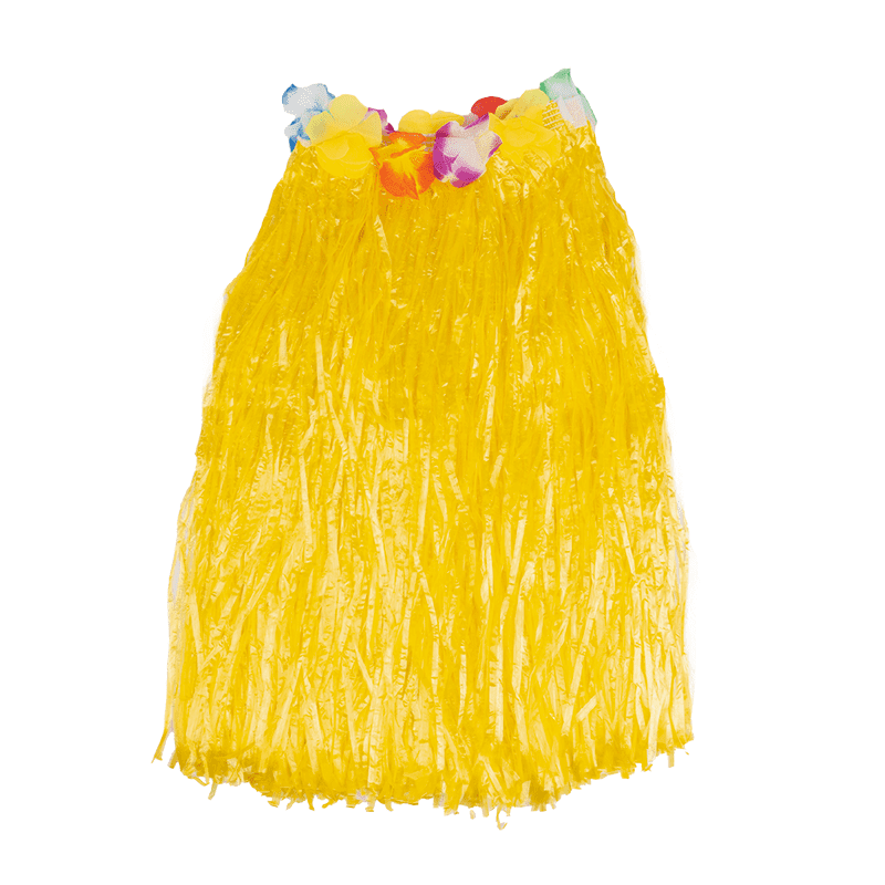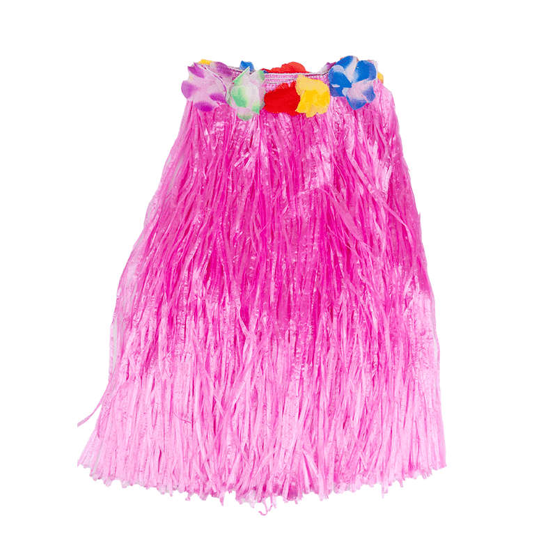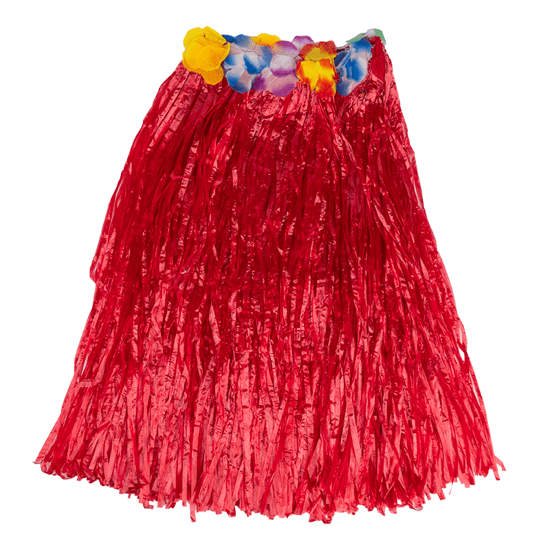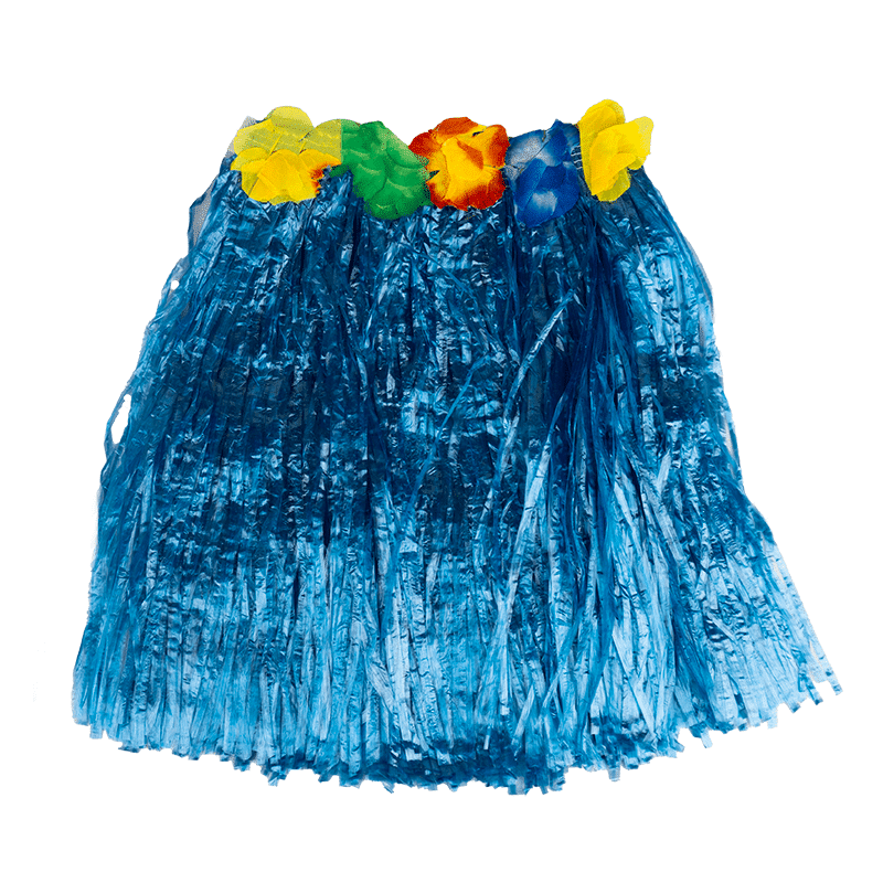 Falda Hawaiana de paja plástica en varios colores, con cinturilla bordada con flores.