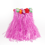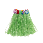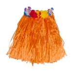 Falda Pequeña Hawaiana de paja plástica en varios colores, con cinturilla de elastico bordada con flores.
