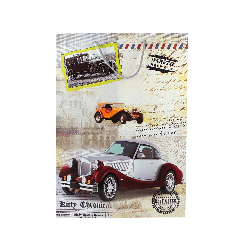 Funda grande de papel con diseño de carros