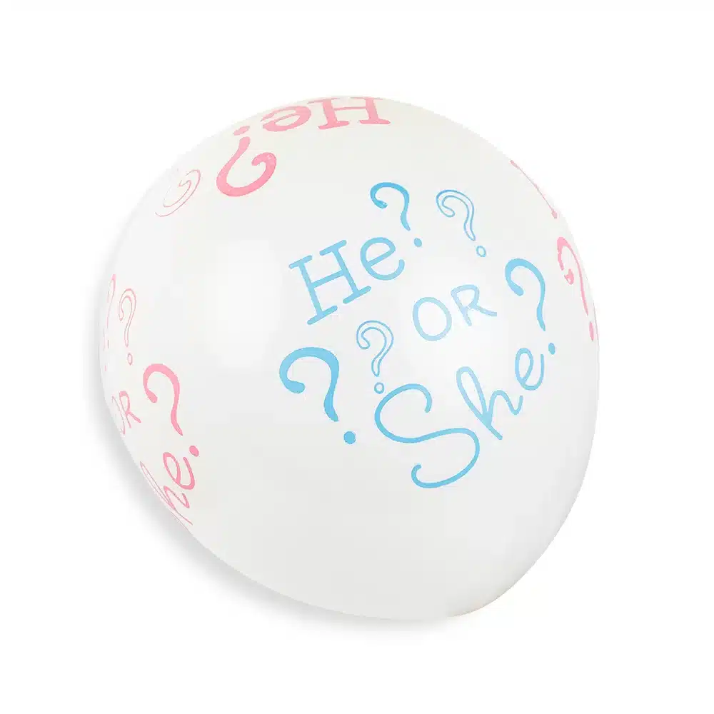 Globo revelación de látex junto con serpentina (rosada o azul).