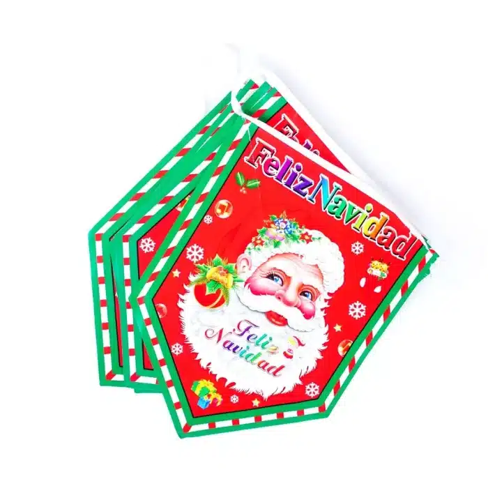 Guirnalda Navideña con imágenes de Santa Claus hecha de papel, perfecto para decoración de fiestas de Navidad.
