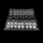 JUEGO DE AJEDRAZ CON SHOTS ELABORADO EN CRISTAL MEDIDAS TABLERO:34CM DE LARGO X 34 CM DE ANCHO MEDIDAS SHOTS: 4.5CM