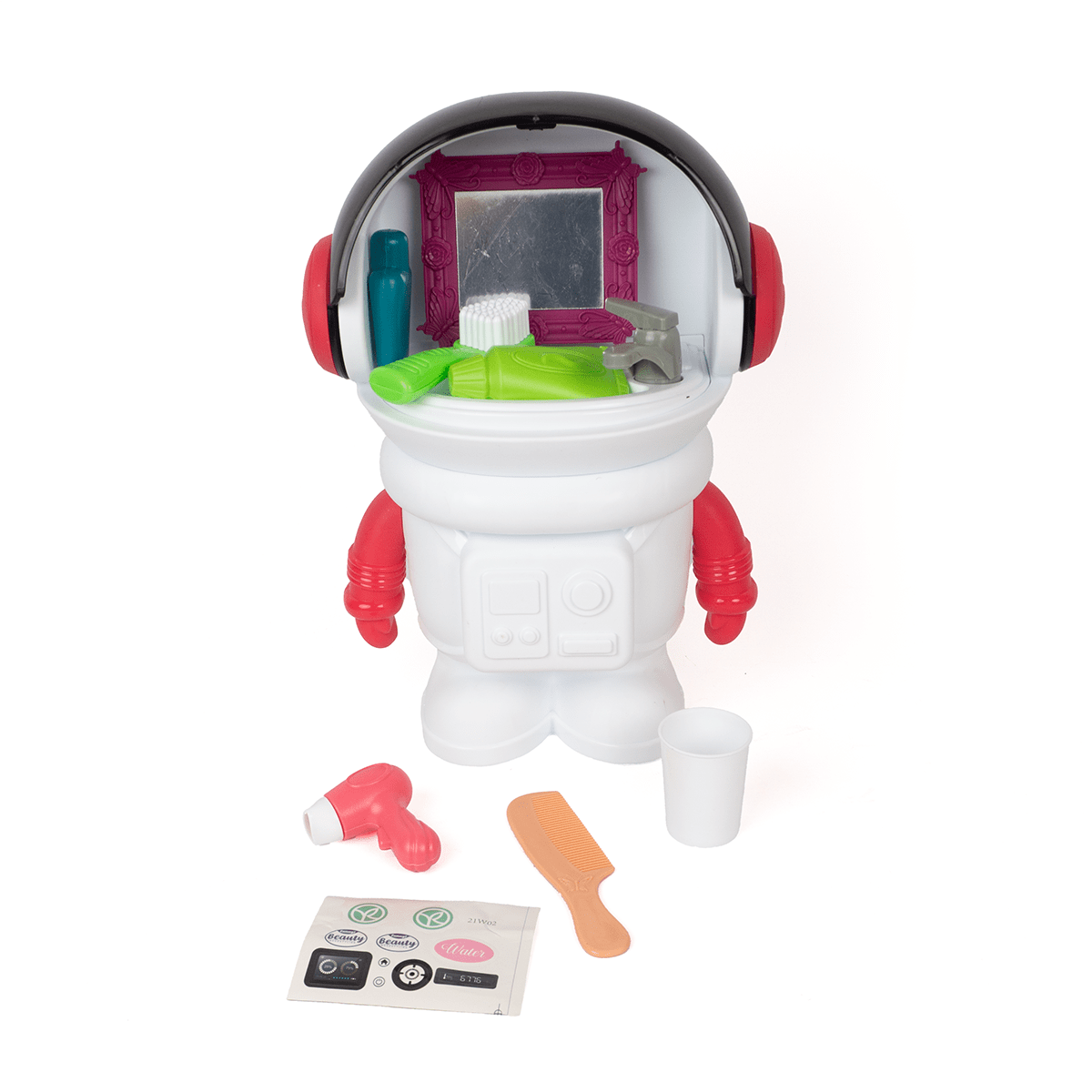 Juego De Belleza En Forma De Astronauta Con Espejo Elaborado En Plastico Medidas;36Cm De Alto X 26Cm De Largo