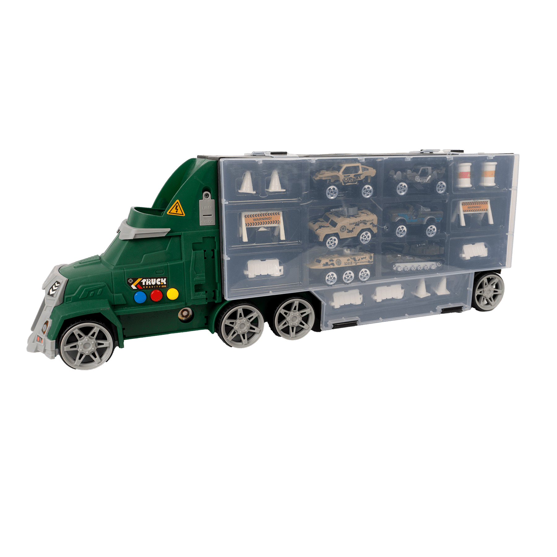 Juego De Camion Con Luces Y Sonidos Incluye 6 Carros De Guerra Medidas: 48 Cm De Largo X 18Cm De Alrto X 13Cm De Ancho