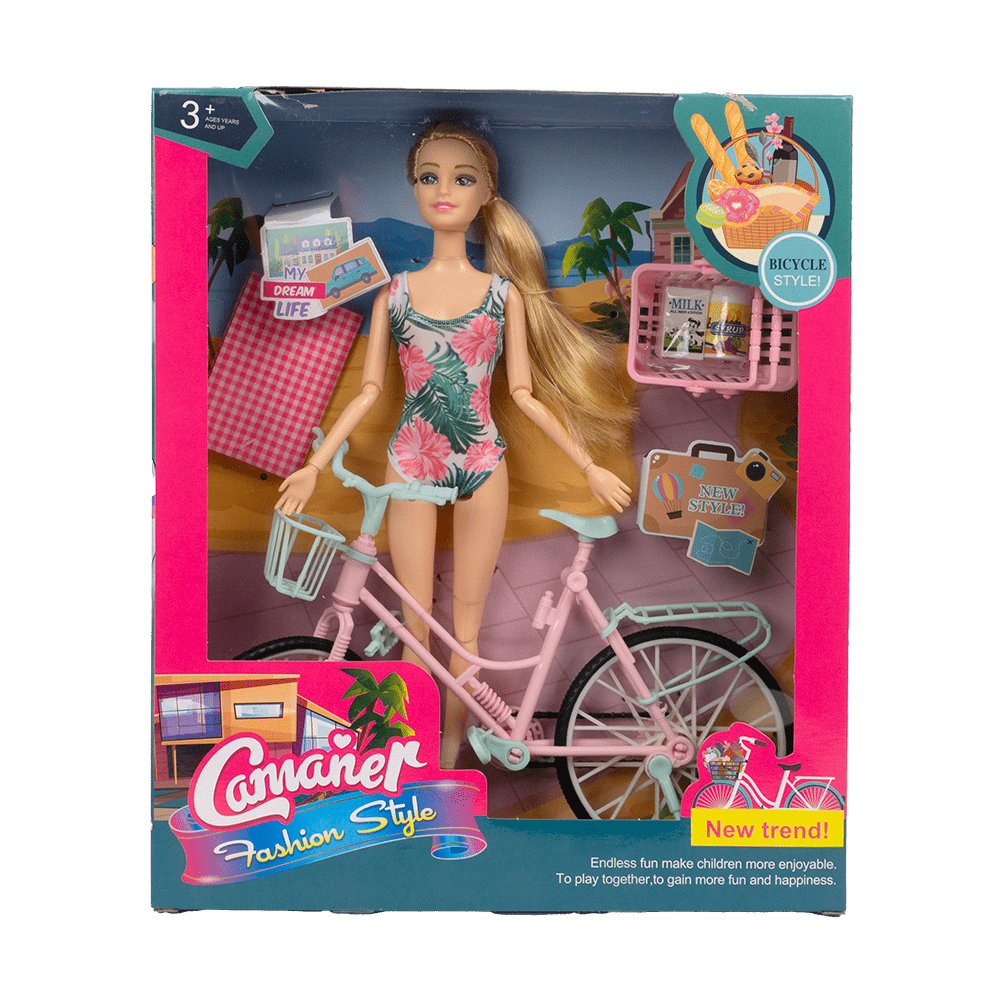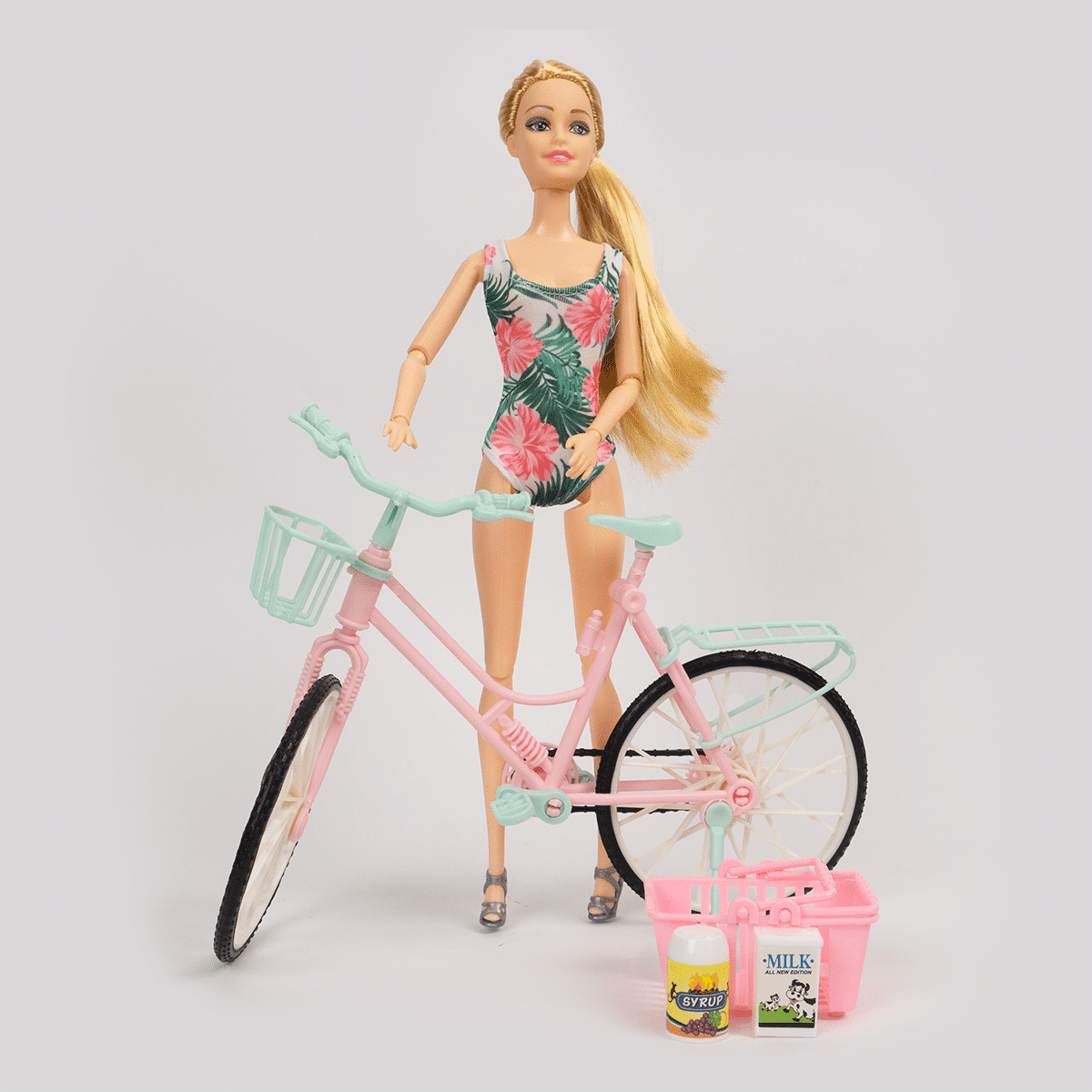 Muñeca Con Bicicleta Elaborada En Plastico Medidas:31Cm De Alto X 21Cm De Largo