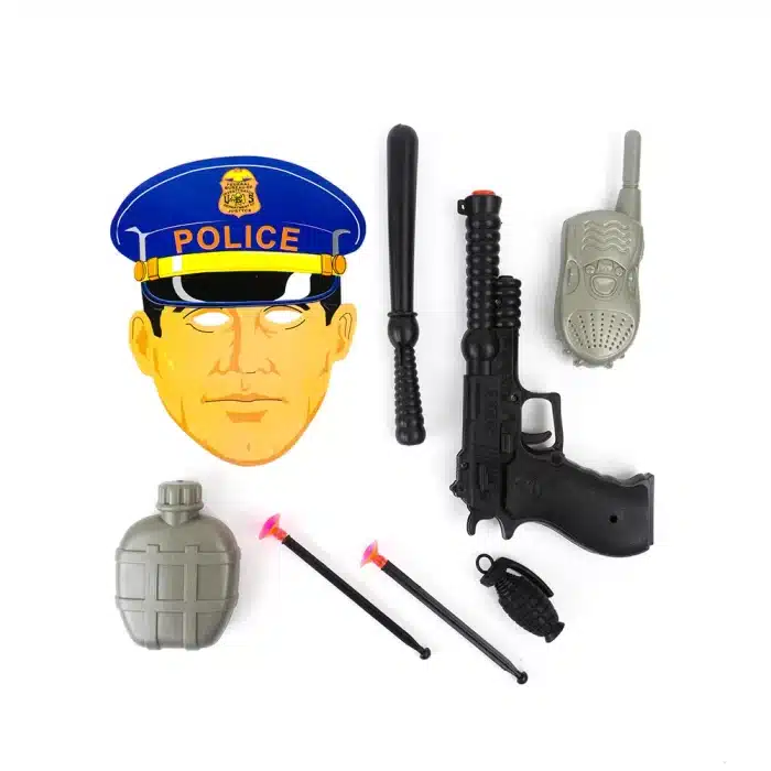 Incluye: 1 careta, 1 walkie , 1 granada, 1 rolo, 1 pistola, 2 dardos y 1 cantimplora.
