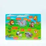 1) Juego de rompecabezas modelo ABC: incluye 27 piezas con el alfabeto ABC. 2) Juego de rompecabezas 123: incluye 10 piezas con los números del 0 al 9 en español e inglés. 3) Juego de rompecabezas de animales salvajes: incluye 9 piezas con los nombres de los animales en español e inglés. Elaborados en madera MDF. Dimensiones: 23 cm de alto x 30 cm de largo.