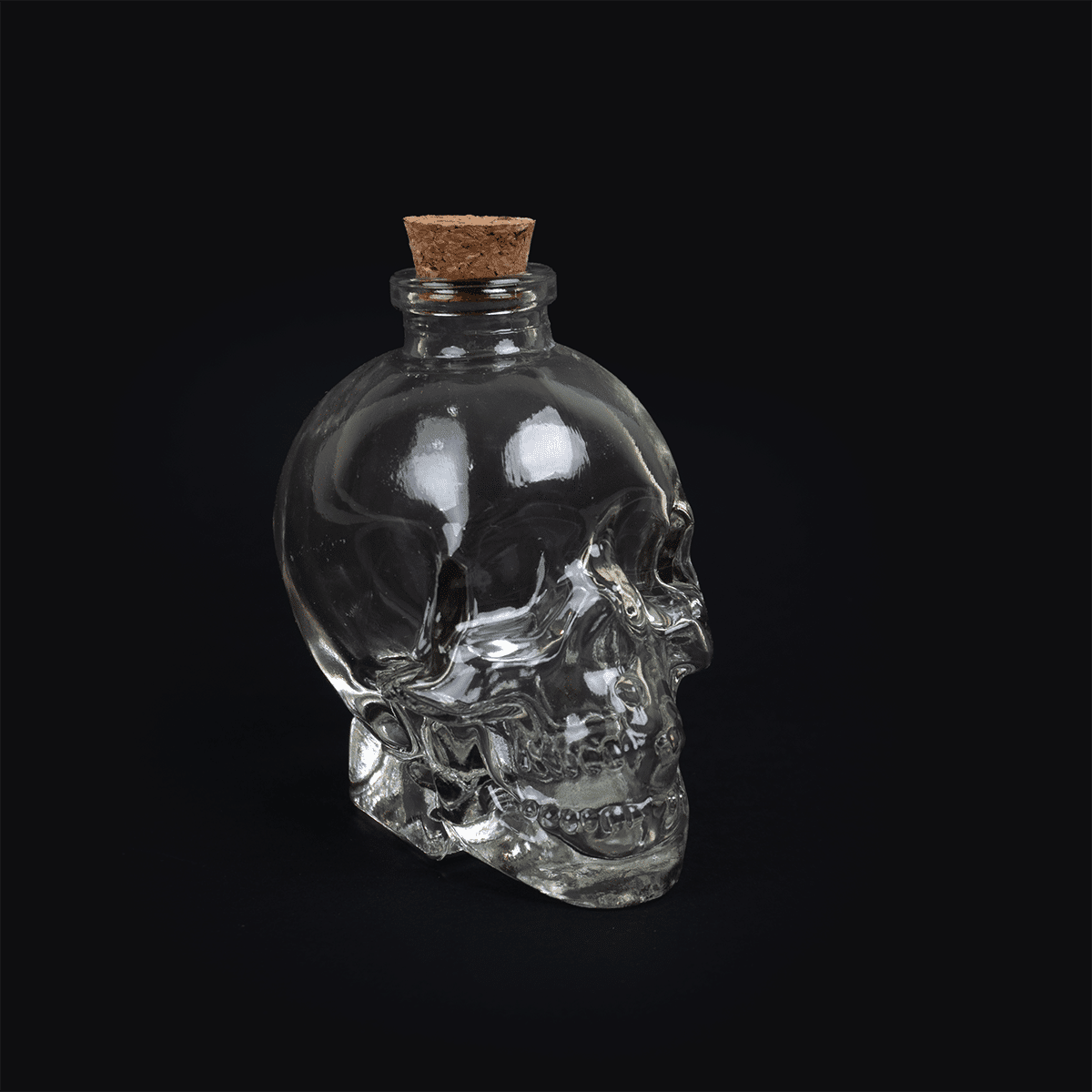 Licorera Pequeña en forma de calavera de 10 cm y 8 cm con tapa de corcho.