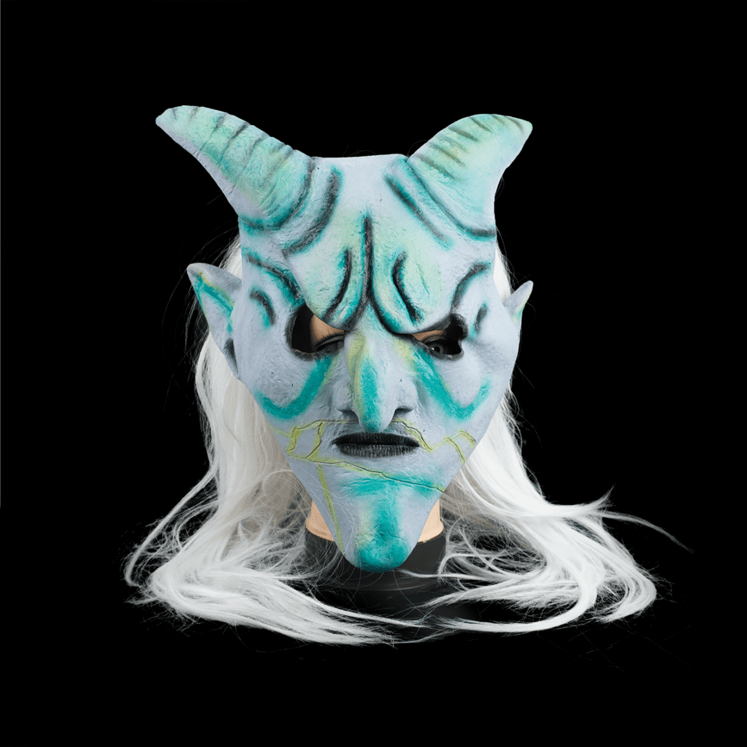 Máscara de látex diablo, con cabello sintético. Medidas 60 cm de largo, incluye malla para mejor comodidad y fácil colocación.