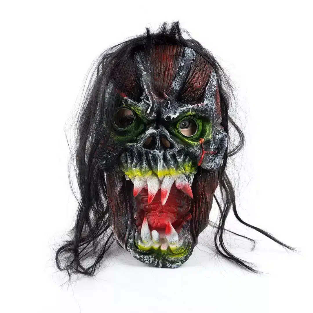 Máscara de latex con capucha de monstruo con cabello sintético y capucha