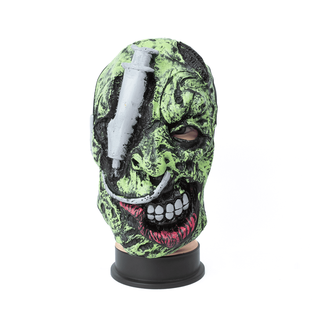 Máscara de látex con capucha.