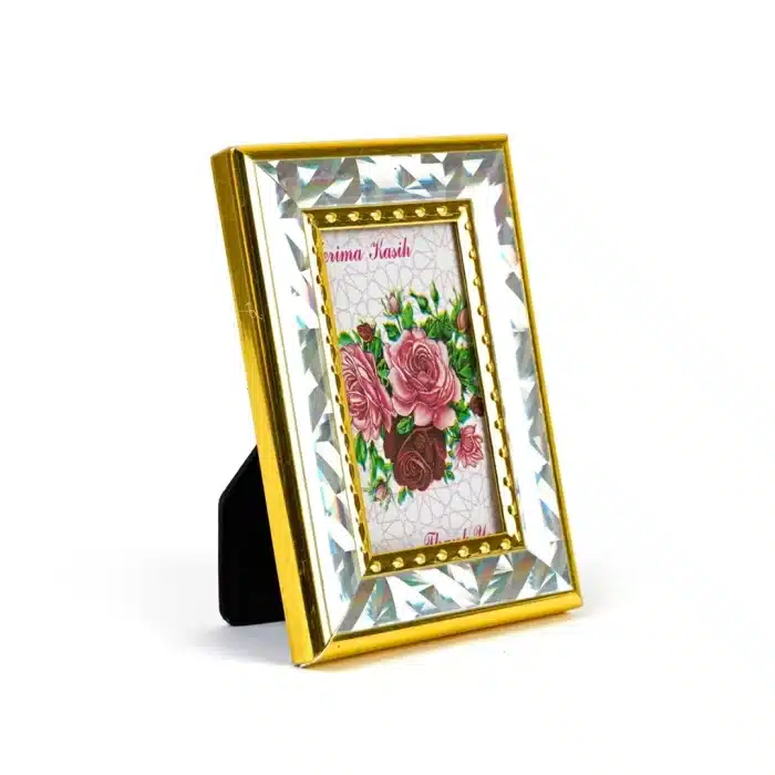 Mide 9 cm de alto x 6 cm de largo con una ventana de vidrio de 5,5 cm de alto por 3 cm de largo con un soporte trasero