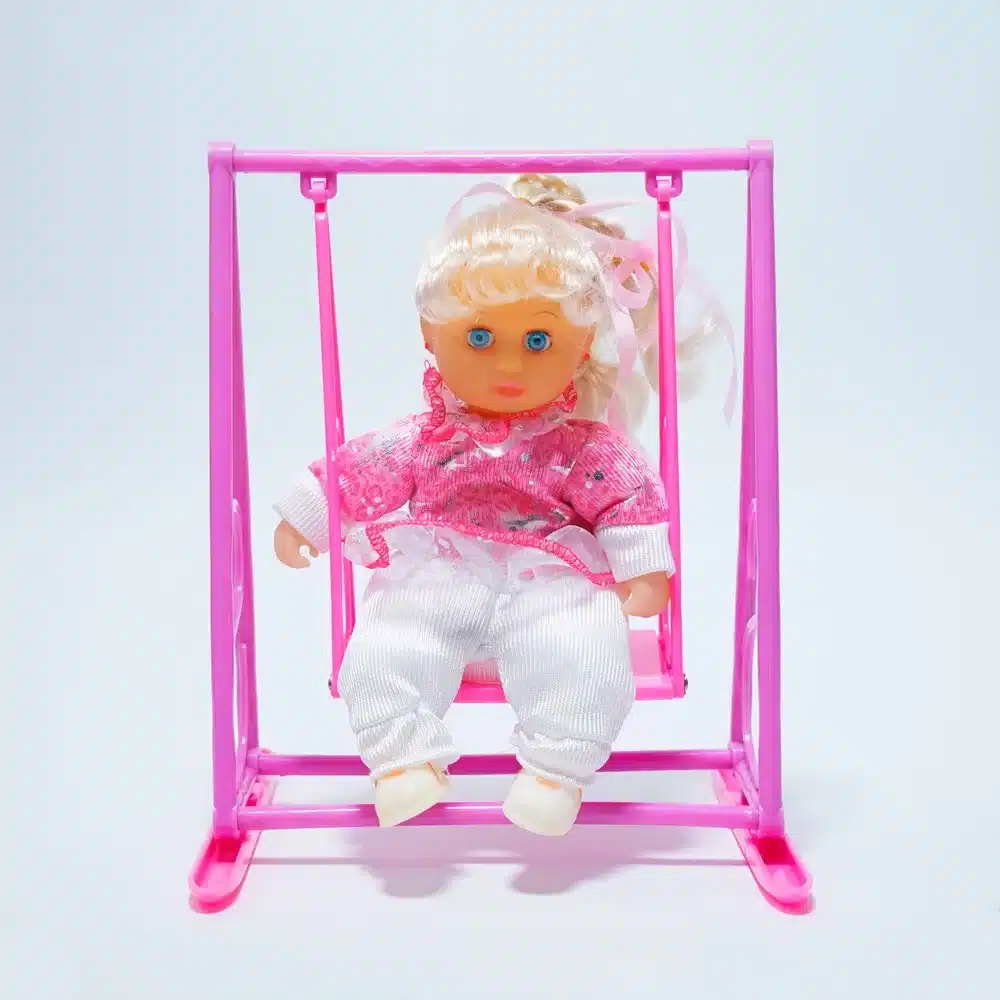 Muñeca en columpio, incluye una muñeca. Medidas 23 cm alto 19 cm largo 7.50 ancho – Columpio.