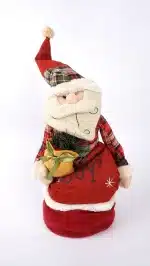 Muñeco decorativo de Santa Claus sobre base retráctil de altura, en tela y fieltro, con bolsa de regalos en mano.