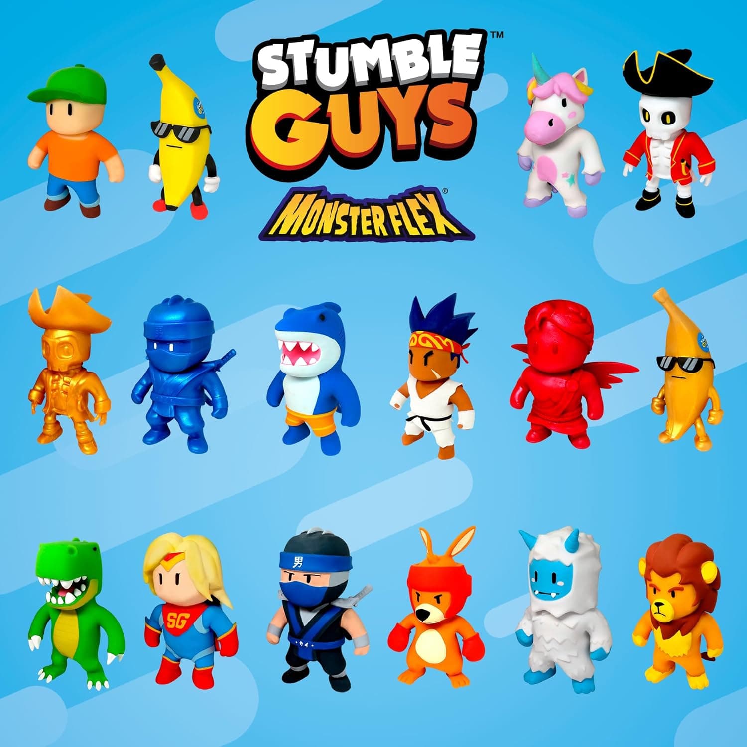 Inspirados en el popular juego Stumble Guys, estos muñecos elásticos son perfectos para recrear las graciosas caídas, saltos y tropiezos de tus personajes favoritos. ¡Haz que la locura del juego se haga realidad con muñecos súper elásticos para estirar y doblar a tu gusto!