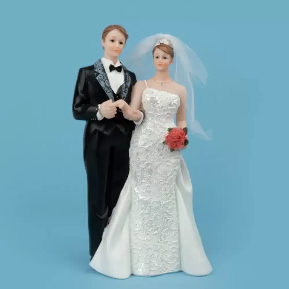 Inicio Figuras Decorativas Recuerdos de matrimonio Pareja de novios con ramo de flores