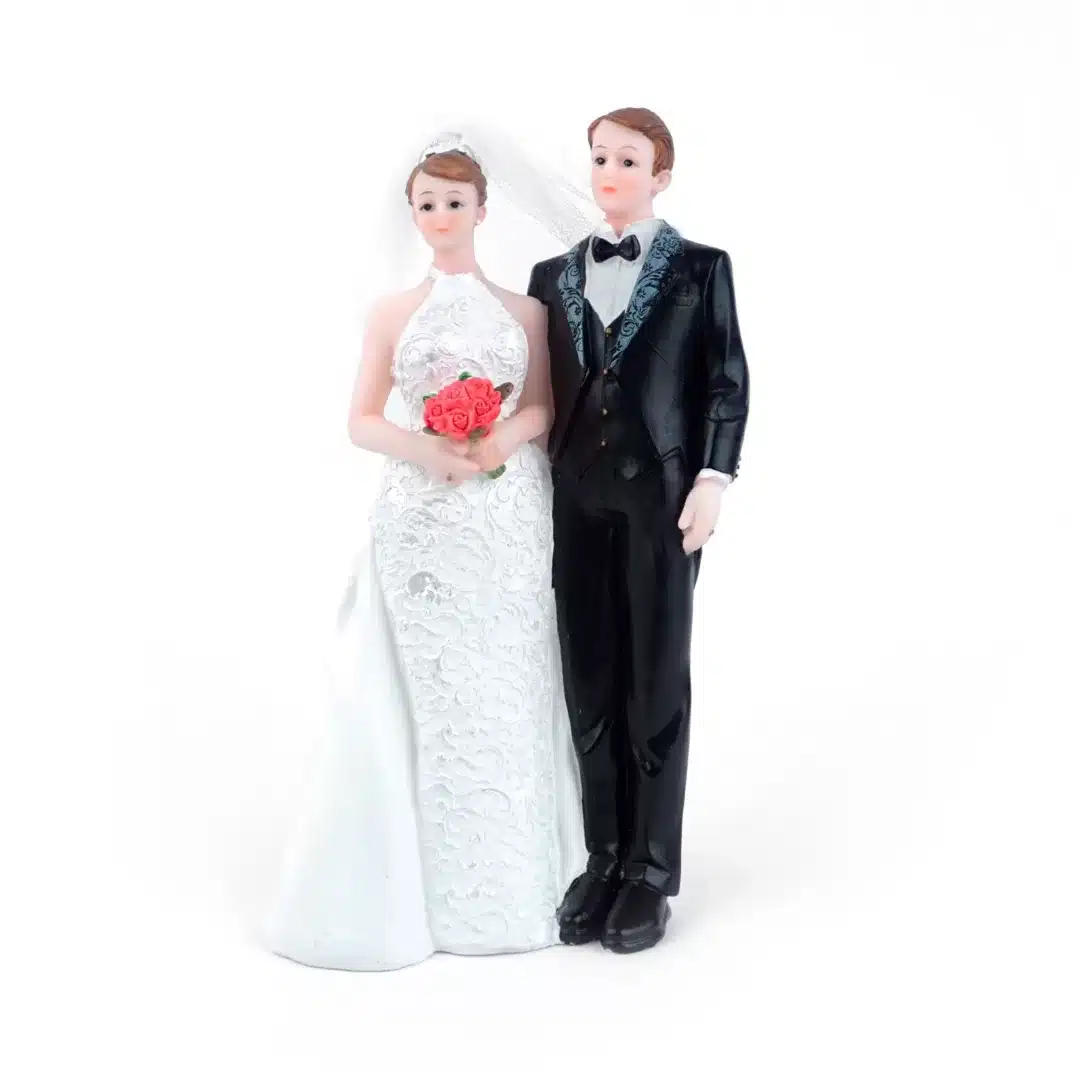Inicio Figuras Decorativas Recuerdos de matrimonio Pareja de novios con ramo de flores