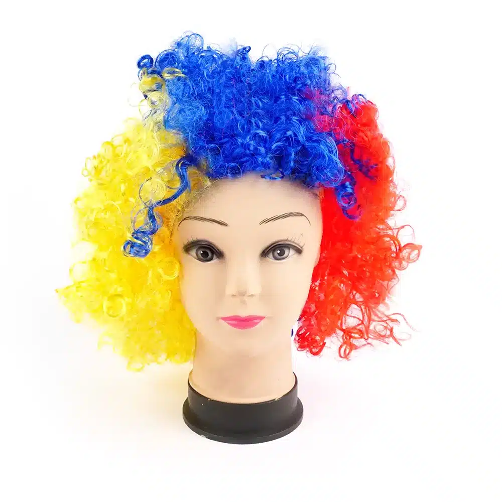 Peluca afro tricolor, incluye una malla adaptable a la cabeza, (fácil de usar). Talla única