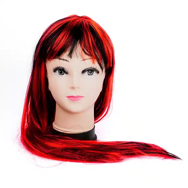 Peluca sintética lisa, con cerquillo, bicolor, incluye malla adaptable a la cabeza (fácil de colocar). Medidas: 70 cm de largo