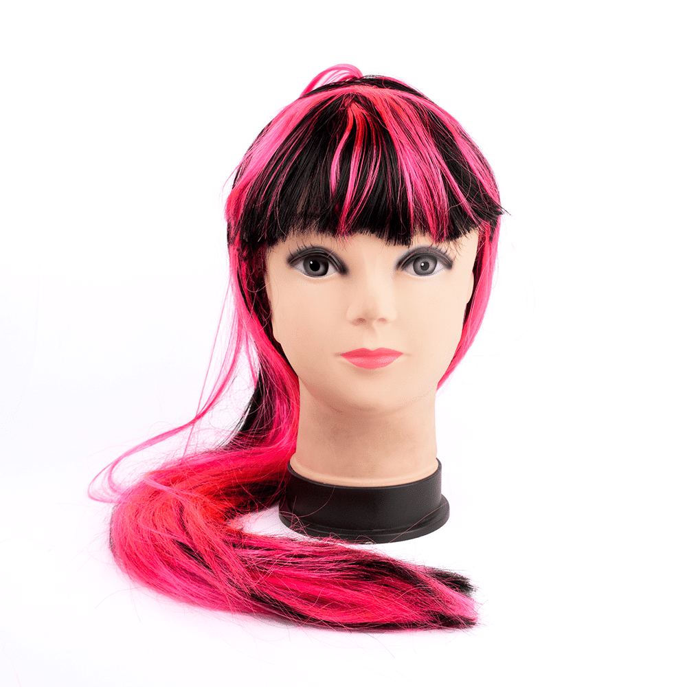 Peluca sintética lisa, con cerquillo, bicolor, incluye malla adaptable a la cabeza (fácil de colocar). Medidas: 70 cm de largo