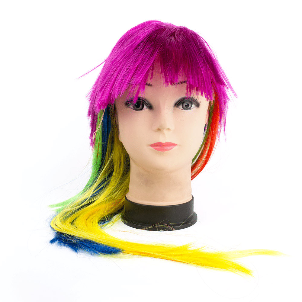 Peluca sintética lacia, multicolor, con cerquillo, incluye malla adaptable a la cabeza (fácil de colocar) Medidas: 70 cm de largo