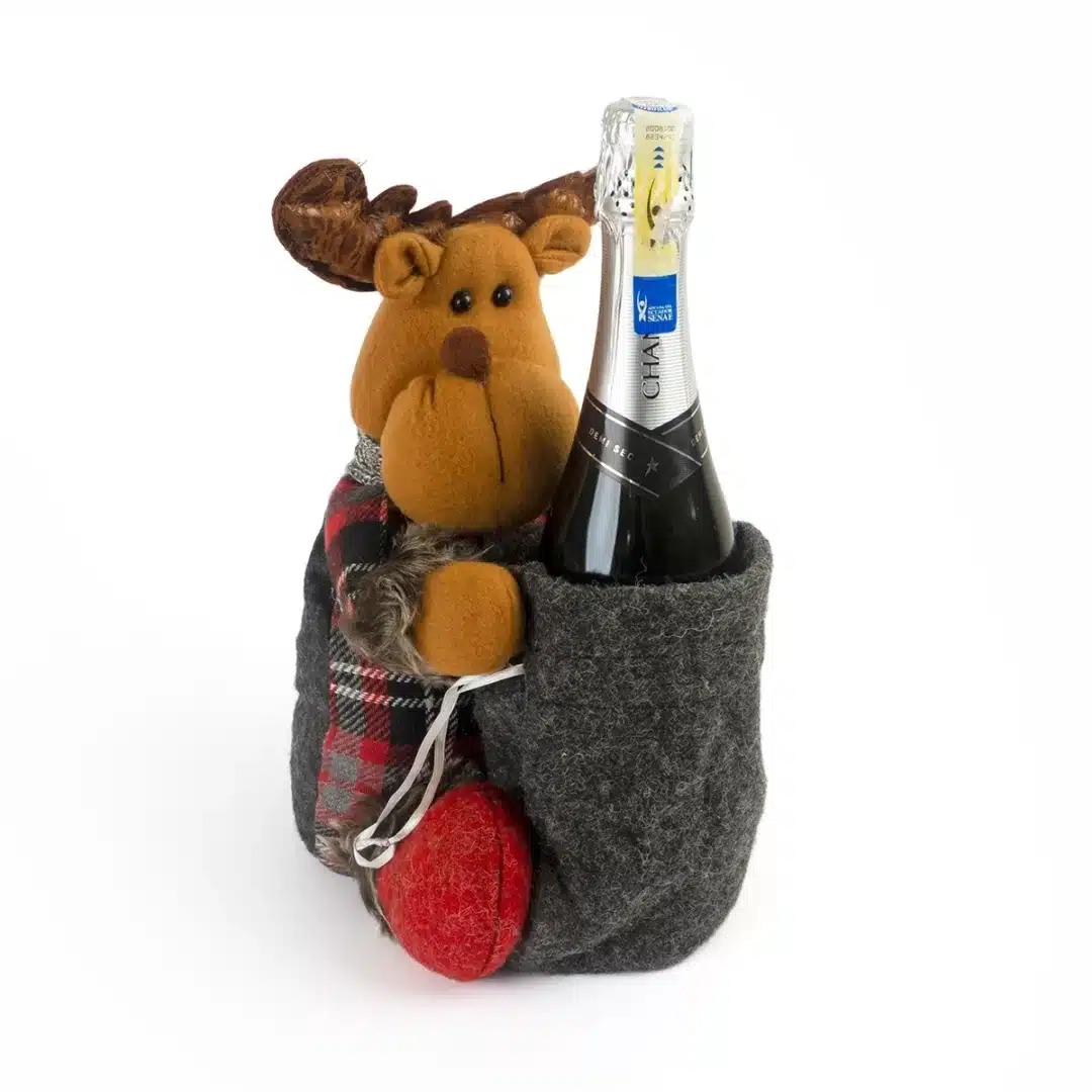 Peluche navideño para botella hombre de nieve