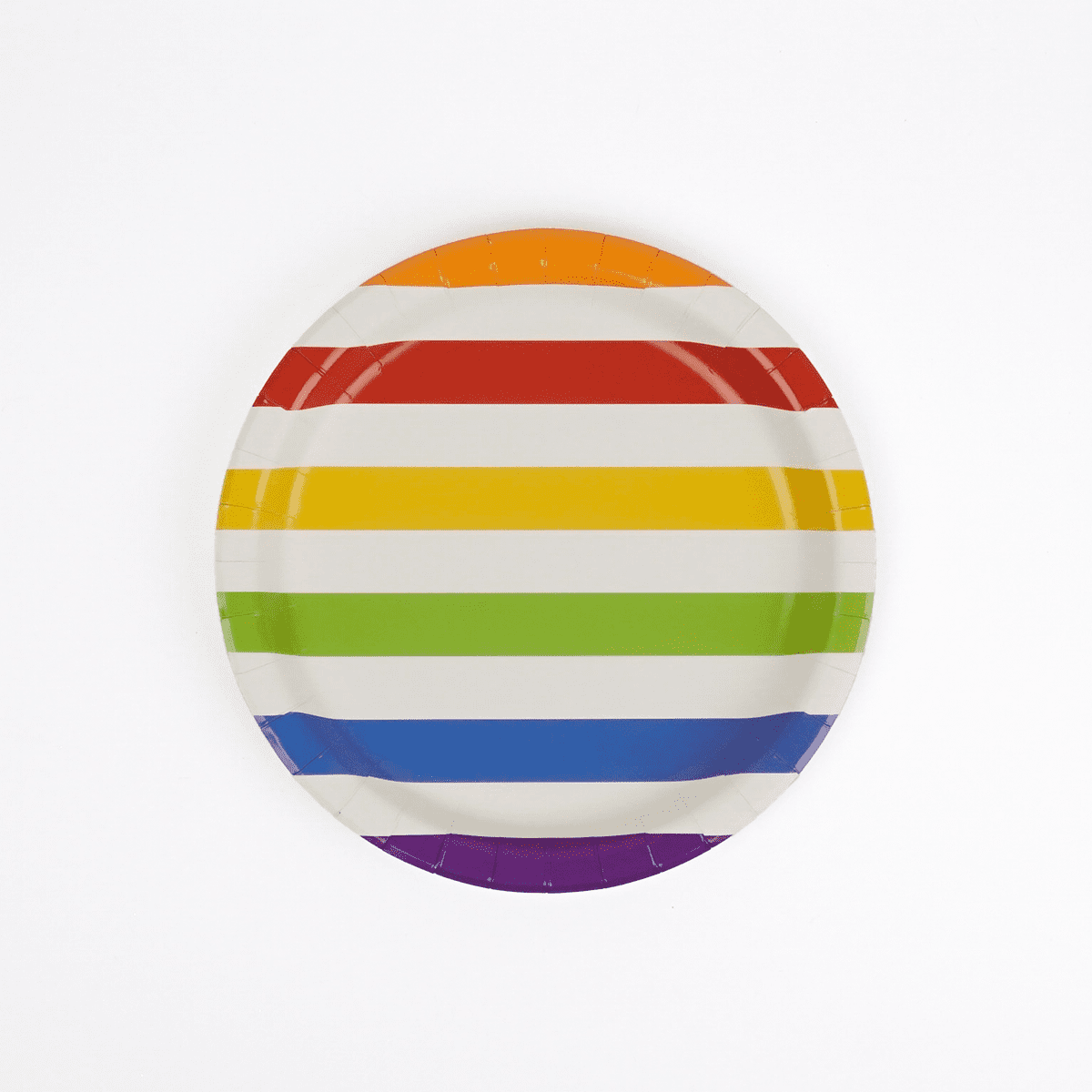 Inicio Fiesta Desechables Plato Rayas Multicolor x8 Pcz