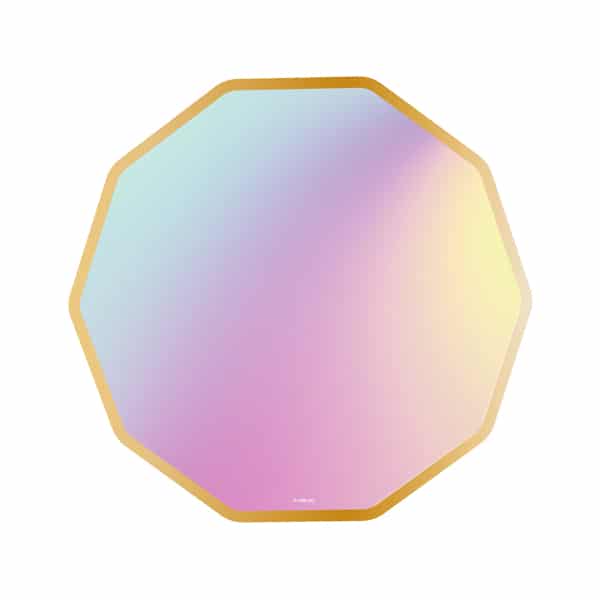 Estos platos octogonales de cartón con acabado tornasol le darán un toque único y cómodo a tu celebración. Con su diseño angular y un acabado iridiscente, son perfectos para eventos especiales como bodas, cumpleaños y más. Con un tamaño ideal para servir entrantes o pequeños bocados, estos platos de cartón desechables son prácticos y elegantes.